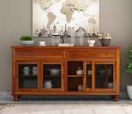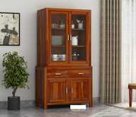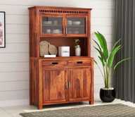 Krishna Wood Decor Solid Sheesham Wood Kitchen Cabinet With Multiple Shelves For Kitchen/ Storage | Solid Wood Kitchen Cabinet (Finish Color - Walnut Revekas, Pre-assembled)