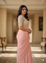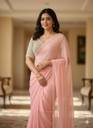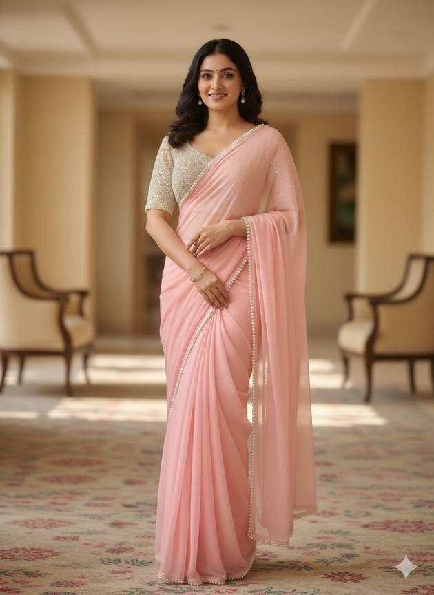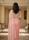 Gerogette Pink Designer Heavy Moti Rivet Work Blouse Saree, Size: Free