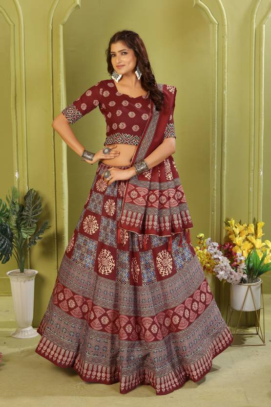 KRISHU ETHNICS Digital Print Semi Stitched Lehenga Choli (Maroon, Blue)