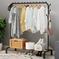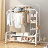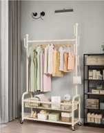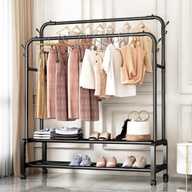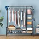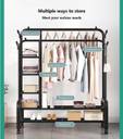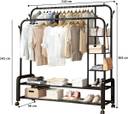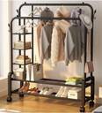 KriShyam ® Premium Heavy Double Rod Garment Rack with Side Storage Shelves &Wheels Carbon Steel Collapsible Wardrobe (Finish Color - Double Rod 4 Shelve - Black, DIY(Do-It-Yourself))