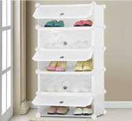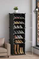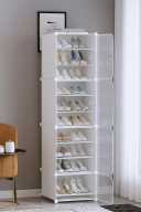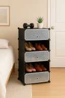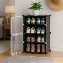 KriShyam ® Shoe Rack Organizer 8 Pair Tower 4 Shelve 2 Door Portable Shoe Storage Rack PP Collapsible Wardrobe (Finish Color - 4 Step Black, DIY(Do-It-Yourself))