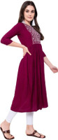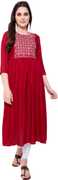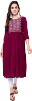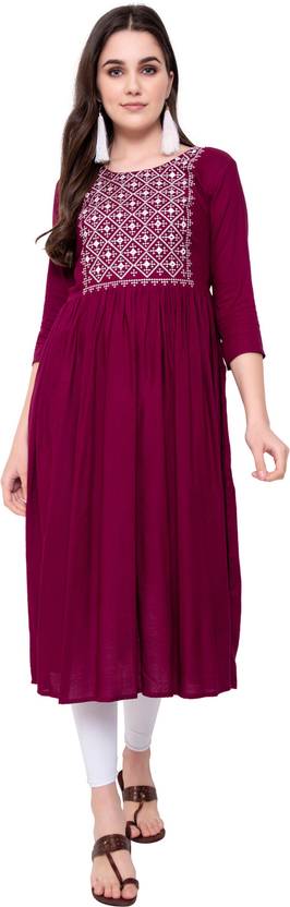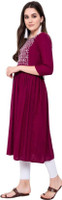 Kriska Women Embroidered A-line Kurta (Maroon)