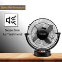 Designed to support silent operation, this table fan delivers strong airflow without causing disturbance. this fan features a high-speed motor with up to three-speed controller, allowing you to adjust the airflow according to their needs. With speeds reaching up to 300 mm and an air delivery rate of up to 2300 cfm, this fan provides effective cooling for personal spaces, desks, or small rooms.