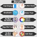 KRITIU dry sheet is a comfortable fabric for baby cots, cribs, cradle, beds with an extra dry layer for incontinence protection. Also, baby's skin breathes better, enjoys cottony softness, and is kept moisturized against friction. Give your baby the freedom to enjoy uninterrupted sleep for longer periods with KRITIU baby bed protector. KRITIU reusable underpad prevents urine and other liquids from going down and dries faster as the fabric layer promotes the removal of water vapour. It allows moisture to pass through, thereby giving comfort to the skin and the cooling effect. It is an alternative to PVC mats, rexine-sheets & rubber-sheets which might be uncomfortable, un-breathable and may cause perspiration. KRITIU waterproof mattress protector is soft, absorbent and reusable, thus, making the sheet usable for babies & patients using the sheet as incontinence underpad also. KRITIU Dry Sheet is available in 6 colors and small sizes.