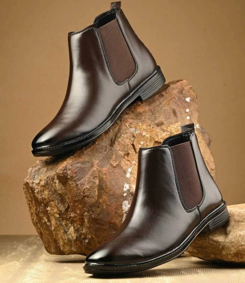 Stylish Brown Synthetic Leather Chelsea Boots For Men Slip on Formal Boots