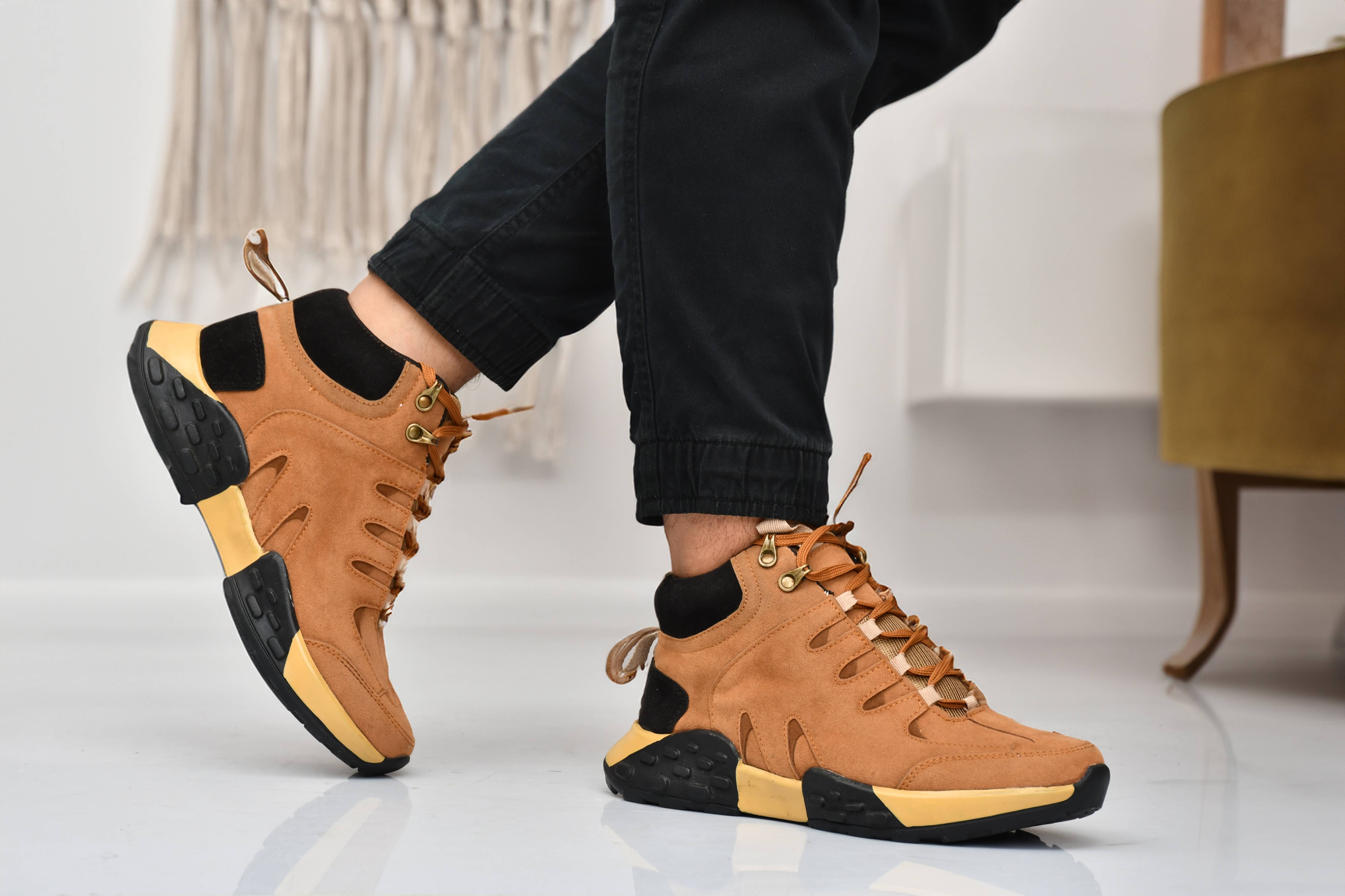 KRITON Boots For Men (Tan, Black , 6)