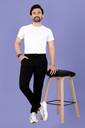 These comfortable black track pants are designed for a casual and relaxed fit. They feature practical side pockets and a back pocket for convenience. Made from a stretchable fabric, as shown in the product images, they offer ease of movement and comfort throughout the day. The solid black color makes them versatile for various casual outfits. These track pants are compatible with a range of casual wear including t-shirts, hoodies, sweatshirts, and can be paired with sneakers, sports shoes, or casual loafers for a complete look.