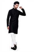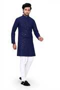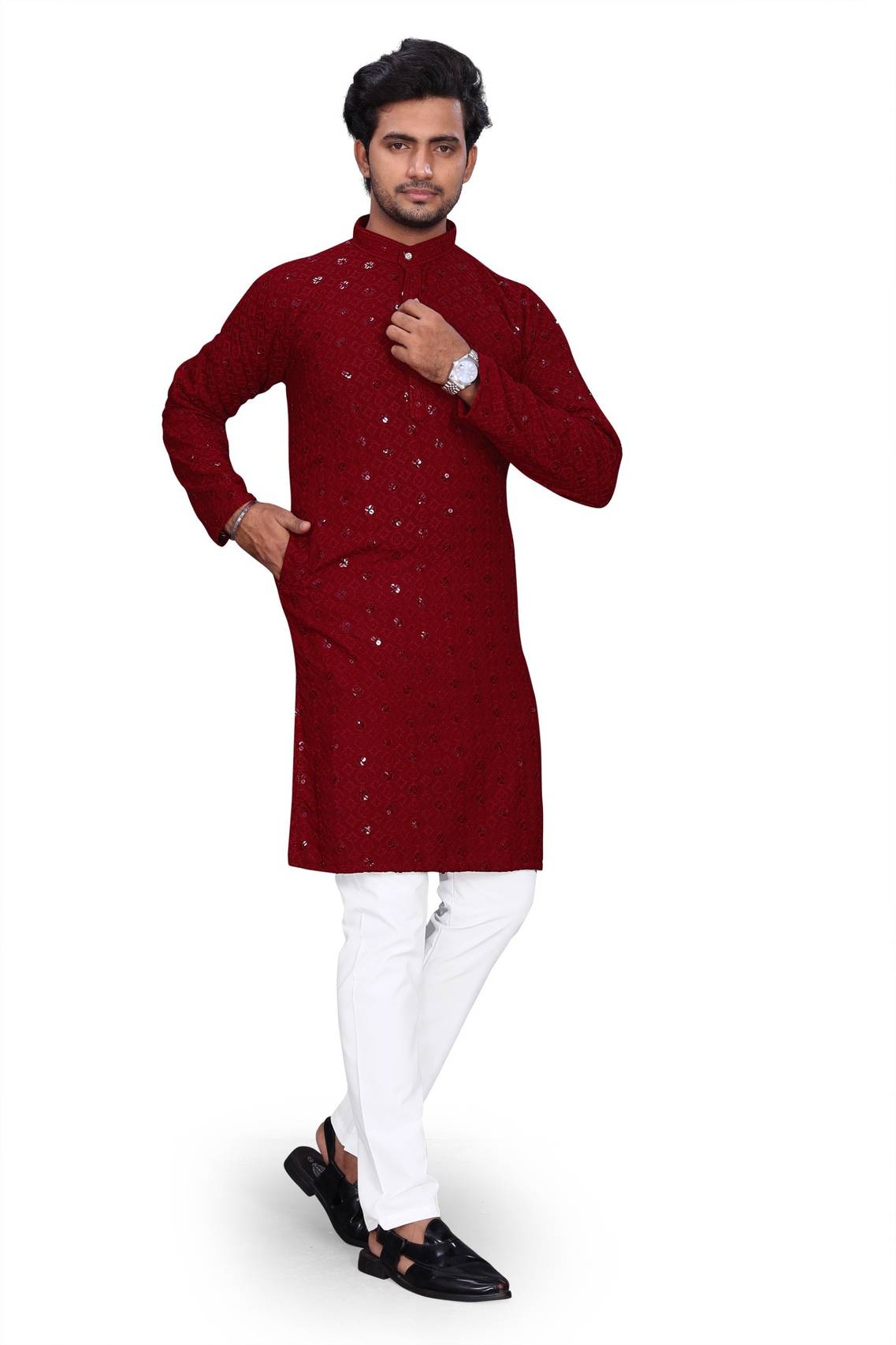 Enhance your ethnic wardrobe with this Men’s Rayon Lakhnavi Chikankari Sequin Embroidery Straight Kurta. Crafted from premium rayon fabric, it offers a soft, breathable feel with a refined traditional appearance. The kurta features elegant Lakhnavi-style chikankari embroidery enhanced with subtle sequin work, giving it a festive and wedding-ready appeal. Designed in a straight fit with a mandarin collar and full sleeves, this kurta delivers both comfort and sophistication. Perfect for weddings, festivals, pooja ceremonies, and cultural events, this traditional kurta is a versatile and stylish choice for modern men.
