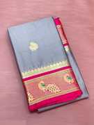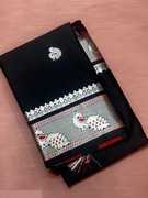 KRIYANSH Printed Paithani Jacquard, Cotton Silk Saree (Black)