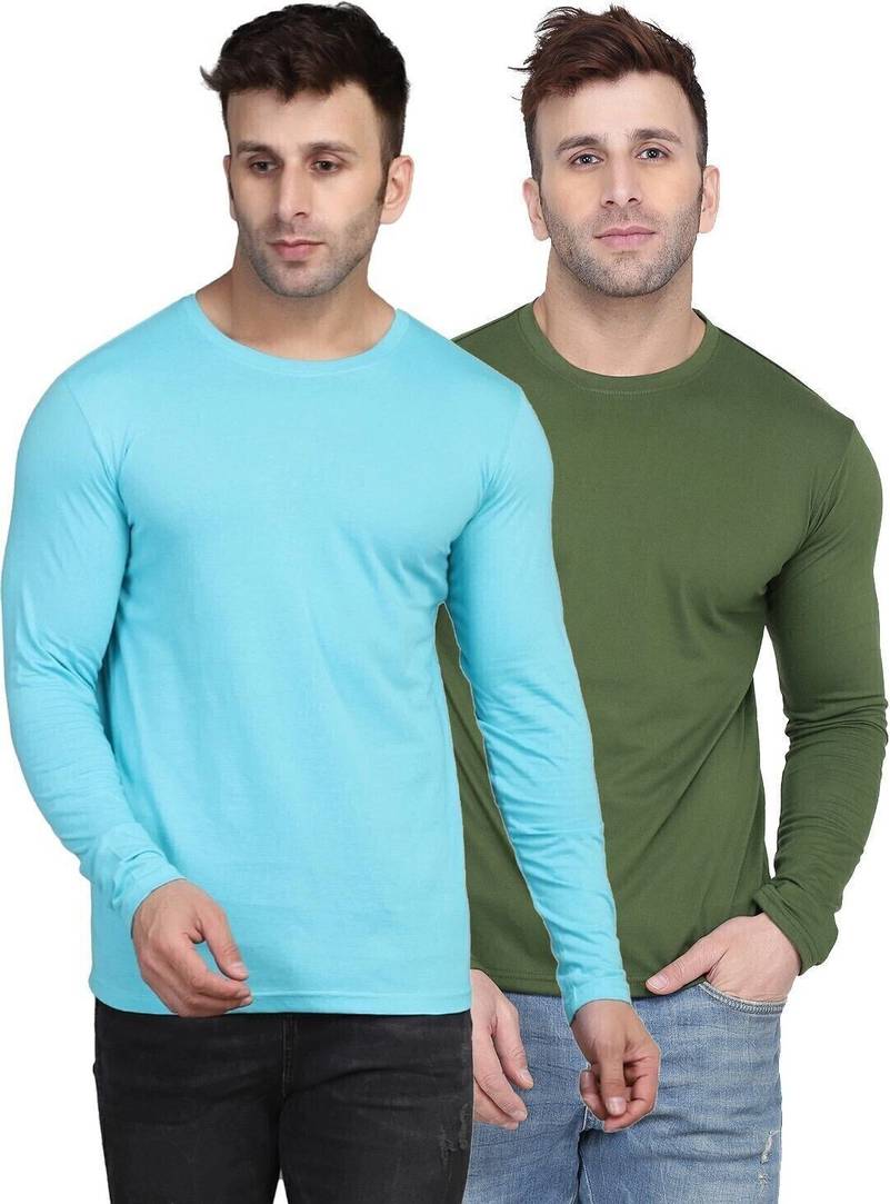 Pack of 2 Men Solid Round Neck Pure Cotton Light Blue, Green T-Shirt