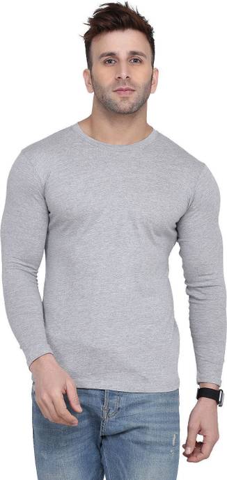 Kroptee Solid Men Round Neck Grey T-Shirt