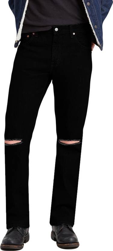 Men Slim Mid Rise Black Jeans