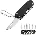 brings pocket cutter 6-bit screwdriver multipurpose cutting tool. This mini EDC tool keychain with adjustable screwdriver is perfect for travelling- camping and other outdoor activities. It is made of stainless steel with multipurpose tools. It is made from high-quality stainless steel material and ABS plastic handle, it is not sticky, sweat and not slippery. Stable and precise structure, high strength and durability. Multifunctional EDC tool, including 7 screwdrivers of different sizes, enough to cope with unexpected daily needs. The screwdriver includes 6 bits that can be stored in the handle structure, avoiding the loss and damage of the bits. Elegant design and exquisite appearance. This practical cutter is small but very effective. There is a hanging chain at the bottom, which can be safely locked on the keychain, which is very suitable for carrying. The unique cutter is the best gift for father, husband, boyfriend or any man in your life, even women who like outdoor activities.