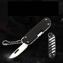 Using high-quality stainless steel material and ABS plastic handle, it is not sticky, sweat and not slippery. Stable and precise structure, high strength and durability., Multifunctional EDC tool, including 7 screwdrivers of different sizes, enough to cope with unexpected daily needs., The screwdriver includes 6 bits that can be stored in the handle structure, avoiding the loss and damage of the bits., his practical cutter is small but very effective. There is a hanging chain at the bottom, which can be safely locked on the keychain, which is very suitable for carrying.