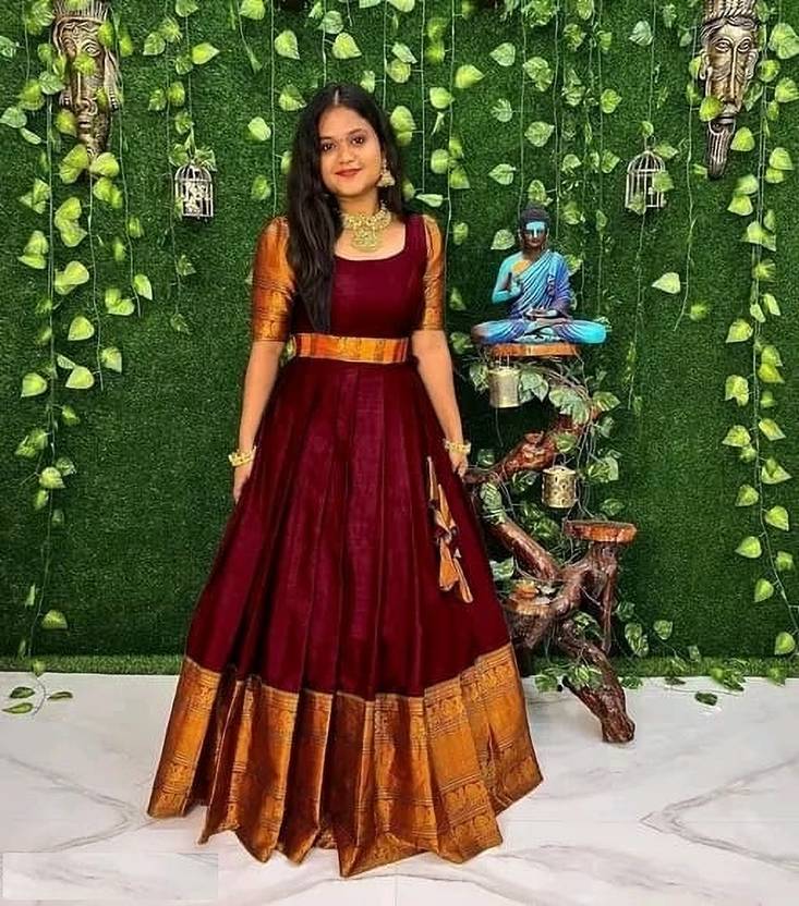 Self Design Jacquard Stitched Flared/A-line Gown (Maroon)