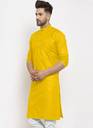 Men Solid Cotton Blend Straight Kurta (Yellow)