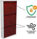 KRUGER 3 Door 20x43x5.5 inch 6 to 9 Shoe Capacity Wall Mounted Centralised Lock Metal Shoe Rack (Cream & Maroon, 3 Shelves, Pre-assembled)