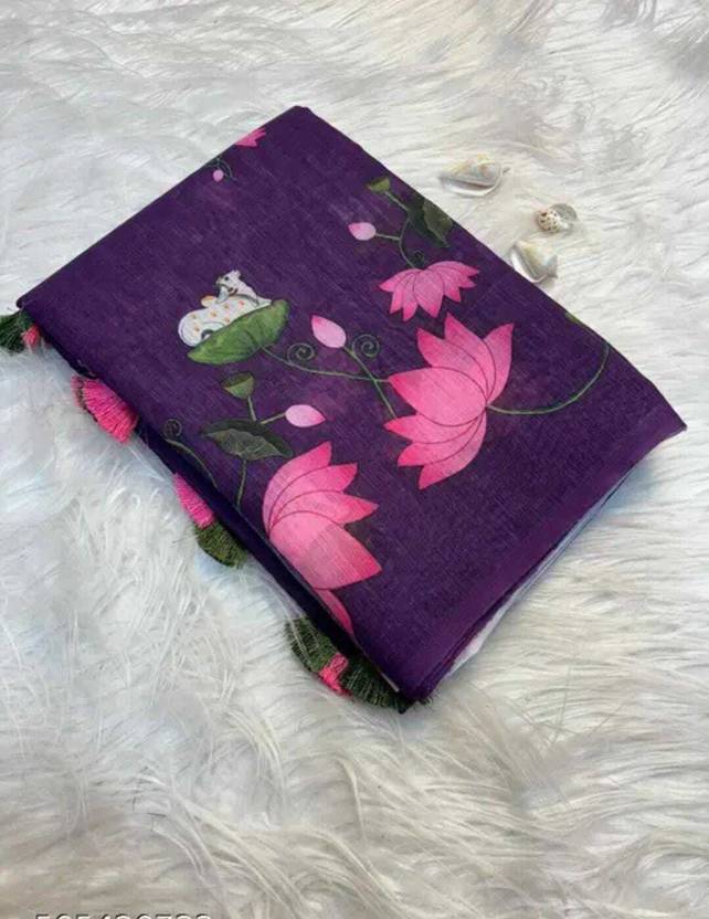 Krujha Animal Print, Digital Print Daily Wear Cotton Linen, Pure Cotton Saree (Yellow)