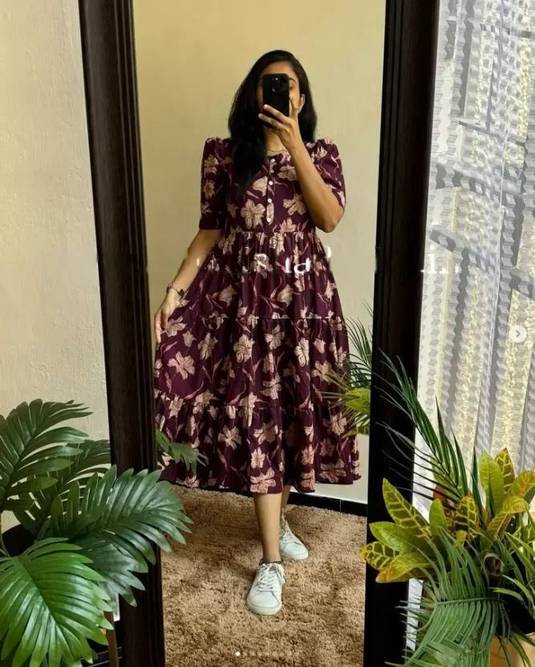 Krulrin offers modern ethnic gown for all your fashion needs. Pioneering the concept of ‘Latest fashion at great prices’ in India, fivaniyo trends is a leading fashion brand with a global presence. fivaniyo trends offers customers a one-stop solution for all occasions and events, and a vast choice of international fashion & quality. This elegant dress is made from poly georgette, which gives a soft and comfortable feel after wearing it. The delicate detailing on the garment has given a modern touch to the whole look which is designed using the latest trims and silhouettes trending in casual fashion.