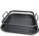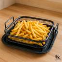 Kruvad Air Fryer Basket Oven - 2 Piece Stainless Steel Crisper Tray & Mesh Basket Set Collapsible Deep Frying Basket (Black Pack of 1)
