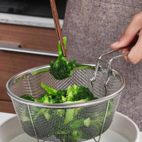 Boasting a robust stainless steel build, this deep-frying basket is designed to resist stains and withstand regular use in high-temperature conditions. Additionally, it is dishwasher-safe, microwave-safe, and freezer-safe, which supports convenient cleaning and multipurpose storage. Moreover, its uniform heat distribution helps achieve even frying, reducing the chances of undercooked or over-fried food.