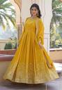 Embroidered Georgette Stitched Anarkali Gown (Yellow)
