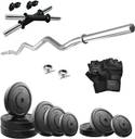 Includes:58 Kg of pure rubber weight (1 Kg x 2= 2 Kg + 2 Kg x 2 = 4 Kg + 3 Kg x 4 = 12 Kg + 5 Kg x 4 = 20 Kg + 10 Kg x 2 =20Kg ), 1 x 3 feet Curl Rod + 2 x 14 " dumbbell Rods, 100% pure leather gym gloves + 2 Locks and clippers comes with the rods