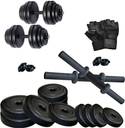 20 Kg of PVC Weight (2 Kg x 4 = 8Kg + 3 Kg x 4 = 12 Kg ), 2 x 14 inch dumbbell rods with nuts, Each dumbbell rod can accommodate maximum of two Weight plates on either side . Possible combinations can be made accordingly., 100 percent pure leather gym gloves, A combination of gym equipment for the perfect workout, Highly durable and long lasting