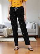 Soft Fabric: Womens pyjama made from super soft 100% cotton fabric is breathable and skin friendly. Ideal weight: Regular length loungepant fabric is crafted to optimal weight making it a perfect relaxed wear with no see through effect, offering all day comfort while ensuring high style quotient. Stylish Design: Fashionable printed bottomwear features elasticated waistband with adjustable drawstring offering a chic and modern look. Versatile Design: Homewear bottom shall be paired with a variety of outfits, from lounge tshirt to elegant tops making it the ultimate relaxwear and homewear. Functional Details: regular length relaxed fit trackpant has a functional sidepocket on wearers right hand side for holding your valuables like mobile phones, wallets.
