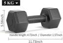 KSF Hexa Black PVC 5KG Hexa Dumbbell Set, 1 Pair Hex Dumbbells, Home Gym 5KG x 2PCS Adjustable Dumbbell (10 kg)