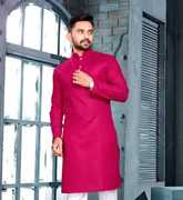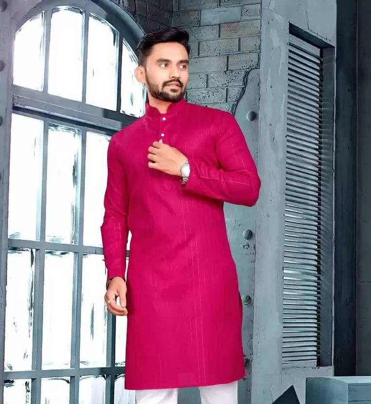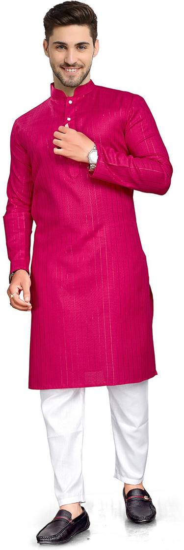 KSH Trendz Men Striped Straight Kurta (Pink)