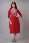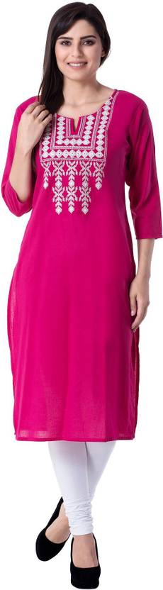 KSHARAA Women Embroidered Straight Kurta (Pink)
