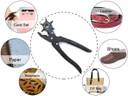 Ideal for making holes on watchband, belts, gaskets, leather, canvas, textiles and soft materials ergonomic rubber handle and anti-slip grip allows you comfortably punching over long time Revolving head for punching 6 different hole size(2MM, 2.5MM, 3MM, 3.5MM, 4MM, 4.5MM) The punch plier is commonly used for punching round holes in leather, belts, plastic, rubber, canvas, fabric, cardboard, saddles, and similar materials; especially useful as a Miknil leather hole punch. Designed for punching neat holes in belts, bags, horse tack & saddles, shoes, sandals, pet collars, id & store cards and for many different craft projects. Hole size dimensions: 2 mm or 5/64 inch 2.5 mm or 3/32 inch 3 mm or 1/8 inch 3.5 mm or 9/64 inch 4 mm or 5/32 inch 4.5 mm or 11/64 inch All the most popular sizes. Double lever mechanism to greatly save your strength. Powerful and do not require much strength to get perfect holes. Comfortable and anti-slip Grip-Handle can improve your work efficiency. Variety of personal & professional benefits