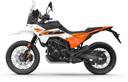 The KTM 390 Adventure offers versatile riding modes, including STREET, RAIN, and OFFROAD, with Motorcycle Traction Control and the option to deactivate it for advanced riders. It features cruise control for long journeys, Cornering ABS for safer braking, and Offroad ABS for controlled slides. With a 14.5-liter fuel tank and optimized ergonomics, it ensures long-range touring comfort and exceptional off-road performance, making it the ideal adventure companion.