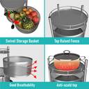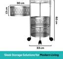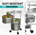 KUBER INDUSTRIES 3-Tier Rotating Multipurpose Storage Rack Trolley with Wheels | Silver Iron Fruit & Vegetable Basket (Silver, Clear)