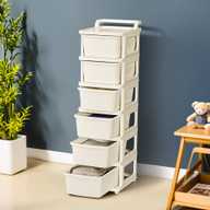 KUBER INDUSTRIES 6 Layer Plastic Modular Storage Drawer Organizer with Wheels | Transparent Ivory Plastic Free Standing Chest of Drawers (Finish Color - Transparent Ivory, DIY(Do-It-Yourself))
