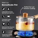 KUBER INDUSTRIES Borosilicate Glass 1.45L Saucepan with Lid & Handle | Induction Safe|Transparent Sauce Pan 16 cm diameter with Lid 1.45 L capacity (Glass, Non-stick, Induction Bottom)