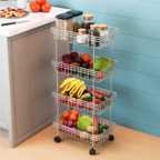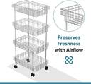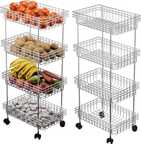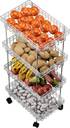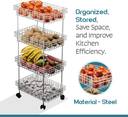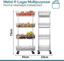 KUBER INDUSTRIES Fruits/Vegetables Kitchen Rack Steel Metal 4-Layer Fruits & Vegetable Stand / Kitchen Trolley with Wheels | Silver