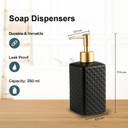 PACKAGE CONTAIN : 3 Piece Soap Dispenser | MATERIAL : Ceramic | PACKAGE DIMENSION : 26 cm x 20 cm x 9 cm,EFFORTLESS & ADJUSTABLE DISPENSING : Our Liquid Soap Dispenser boasts an adjustable dispensing feature that grants users complete control over the amount of soap dispensed, catering to individual preferences and specific usage requirements. This unique functionality allows for effortless customization, ensuring that the dispenser dispenses the precise amount of soap needed for each use, minimizing waste and promoting cost-effective and efficient handwashing practices. ,MULTI-PURPOSE UTILITY : The Soap Dispenser is Renowned for its Multi-purpose utility, capable of Accommodating a diverse array of liquid solutions, ranging from traditional hand soaps and dishwashing liquids to more specialized products such as essential oils and fragrances.