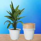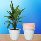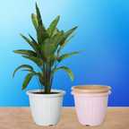 KUBER INDUSTRIES Marble Duro Flower Pot for Home & Gardening|Pack of 6|8 Inch|Beige & Peach Plant Container Set (Pack of 6, Plastic)