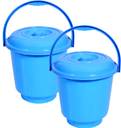 KUBER INDUSTRIES Plastic Strong Bathroom Bucket With Lid And Handle,13 Ltr,Pack of 2 (Sky Blue) 13 L Plastic Bucket (Blue)