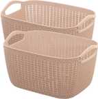 KUBER INDUSTRIES Plastic Unbreakable Plastic 2 Pieces Multipurpose Medium Size Flexible Storage Baskets / Fruit Vegetable Bathroom Stationary Home Basket with Handles (Grey) -CTKTC39065 Storage Basket (Pack of 2)