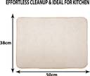 PACKAGE CONTAIN : 1 Piece Dish Dry Mat | Size- 19x15 Inch | Embossed Design | MATERIAL : Microfiber | PACKAGE DIMENSION : 50 cm x 38 cm x 1 cm,VERSATILE USE & RAPID ABSORPTION : The Dish Drying Mat Presents a game-changing solution that seamlessly blends versatile functionality with rapid absorption capabilities. This remarkable product is not just your ordinary dish drying mat�it's a multitasking marvel that transforms the way you manage your kitchen. With its superior versatility, it goes beyond its primary role of drying dishes, offering a dependable surface for handling spills, acting as a protective layer under potted plants.,STYLISH & PRACTICAL CHOICE : Elevate Your Kitchen Experience with the Dish Drying Mat�a perfect fusion of style and practicality. This remarkable product isn't just a drying mat; it's a statement piece that enhances the aesthetic of your kitchen while providing unparalleled functionality. Its sleek and modern design adds a touch of sophistication to your countertop, effortlessly blending with your kitchen decor. But beyond its stylish exterior, this mat is a powerhouse of practicality.,ECO-FRIENDLY & ODOR-FREE : Experience a New Level of conscientious living with the Dish Drying Mat�an eco-friendly and odor-free solution that aligns seamlessly with your sustainable lifestyle. Crafted with care, this product not only simplifies your kitchen routine but also makes a positive impact on the environment. Made from eco-conscious materials, it stands as a testament to responsible consumption,ensuring that your kitchen remains fresh and odor-free. ,EFFORTLESS CLEANUP & IDEAL FOR KITCHEN : Discover the Epitome of Convenience with the Dish Drying Mat�a product designed to simplify your cleanup routine effortlessly while proving to be the ideal addition to any kitchen. Imagine a world where post-meal cleanup becomes a breeze.our innovative drying mat makes it a reality. Its remarkable microfiber composition absorbs moisture rapidly, leaving your dishes impeccably dry and eliminating the need for time-consuming hand drying.