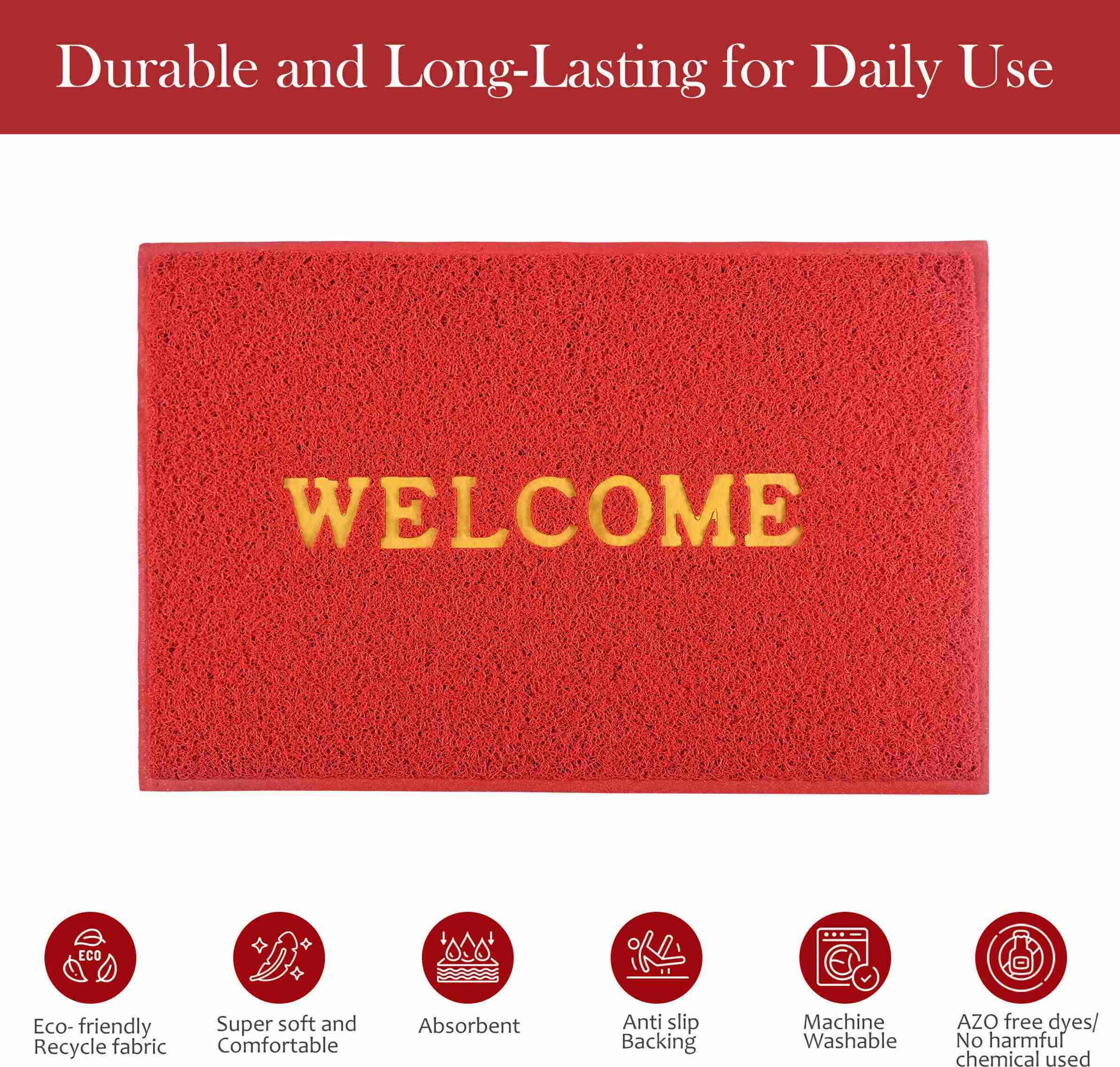 Rubber Door Mat (Red, Pack of 3, Large)