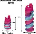 PACKAGE CONTAIN : 1 Piece Water Bottle | 500 ML | MATERIAL : Silicone | PACKAGE DIMENSION : 23 cm x 7 cm x 7 cm,INNOVATIVE SPACE-SAVING TECHNOLOGY : Our Silicone bottle is a testament to innovative space-saving technology. Designed with your convenience in mind, this bottle utilizes cutting-edge collapsible technology to save space when not in use. Made from quality silicone, it's not only compact but also resilient, ensuring it withstands the rigors of daily life. Whether you're packing for a weekend getaway, hitting the gym, or commuting to work, our folding water bottle is your trusted companion.,VERSATILE & ECO-FRIENDLY : Our Folding Water Bottle is a versatile and eco-friendly solution for your hydration needs. With its adaptable design, it easily transitions from compact storage to a functional water container. Crafted from eco-conscious materials, it reduces your environmental footprint by replacing single-use plastic bottles. This bottle suits various lifestyles, whether you're traveling, camping, or simply heading to the office.,LEAK-PROOF & BPA-FREE CHOICE : Make the Smart choice with our bottle � it's leak-proof and BPA-free. Designed to provide a reliable and secure seal, this bottle ensures you won't experience any messy spills, even when on the move. Furthermore, our commitment to your health and well-being is evident as this bottle is free from harmful BPA and other potentially harmful substances. Enjoy peace of mind with every sip, knowing that you've chosen a safe and dependable hydration solution.,UNIQUE SNAP HOOK & EXPANDABLE BOTTLE : The built-in snap hook allows you to easily attach the bottle to your Belt or backpack, ensuring you stay hands-free while on the go. What sets this bottle apart is its expandable feature, which allows you to adjust its capacity to your needs. Whether you want a quick sip or a full bottle, it adapts effortlessly. This versatility makes it perfect for travel, hiking. Experience the freedom and functionality of our unique snap hook and expandable bottle.