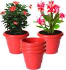 KUBER INDUSTRIES Solid 2 Layered Plastic Flower Pot|Gamla ,6"x5",Pack of 5 (Blue) Plant Container Set (Pack of 5, Plastic)