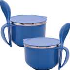 KUBER INDUSTRIES Stainless Steel Soup Bowl Noodle & Soup Bowl Set|Noodle Bowl with Spoon|600 ML|Pack of 2|Brown (Pack of 2, Brown)