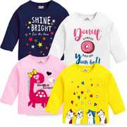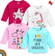 Kuchipoo Baby Girls Printed Cotton Blend Regular T Shirt (Multicolor, Pack of 4)