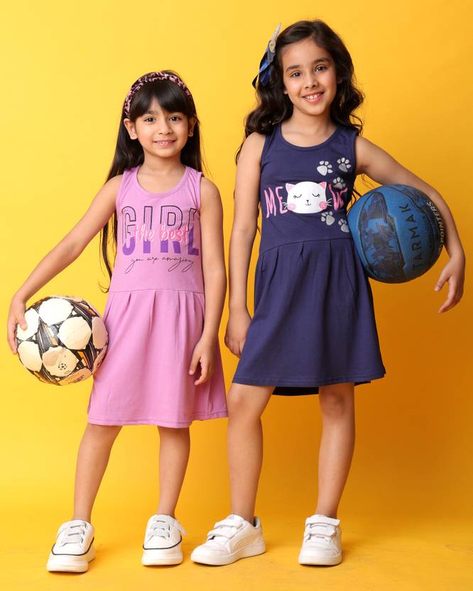 Kuchipoo Girls Midi/Knee Length Casual Dress (Multicolor, Sleeveless)