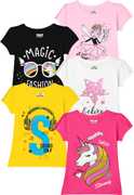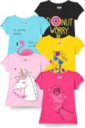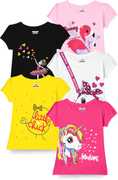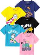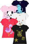 Kuchipoo Girls Printed Cotton Blend Regular T Shirt (Multicolor, Pack of 5)
